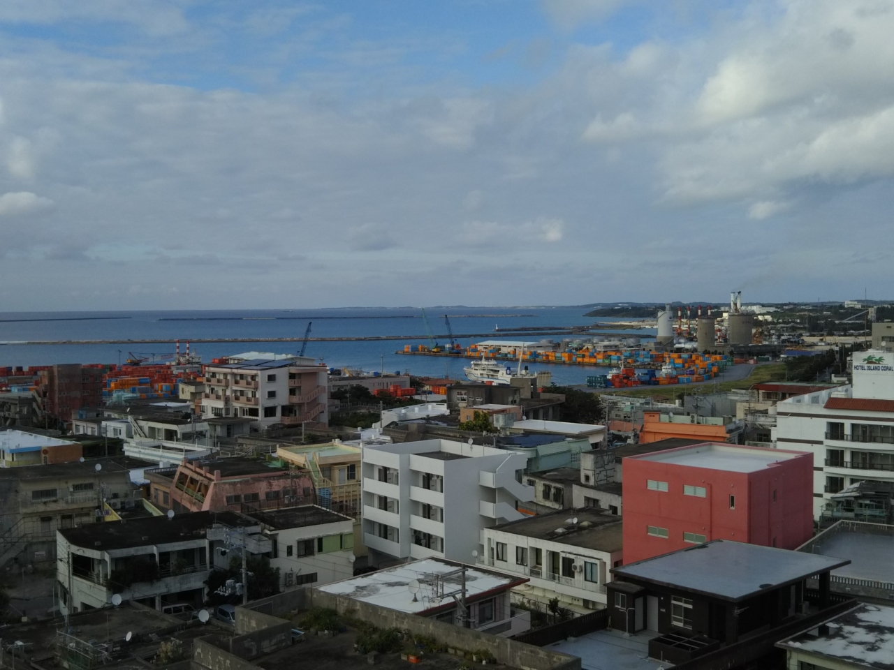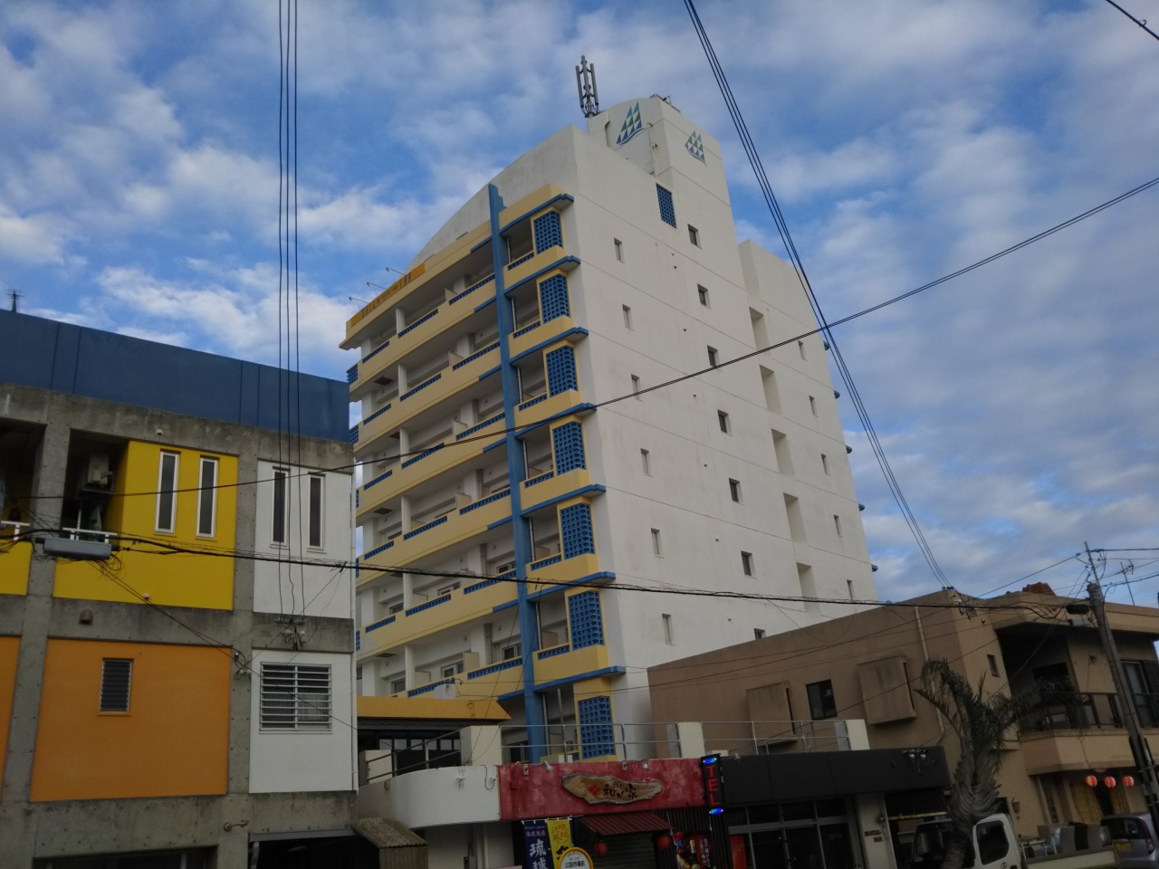 平良港の近くに位置しているので上層階であれば海が見え眺望は良好。また西里通りに行くのも便利で飲食店、特にアルコール中心の店に繰り出すには便利な場所にあります。