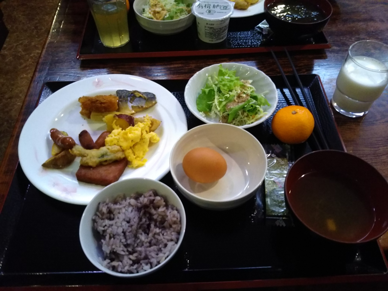 朝食のバイキングはメニューの種類が少なめで、しかもフルーツは何とみかんだけとややがっかり。連泊にしないで良かったというのが正直なところです。