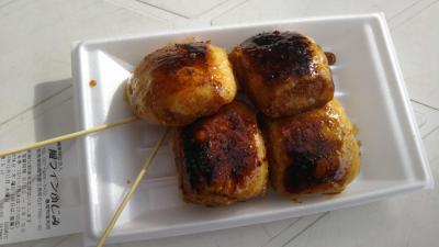 こちらでは群馬のソールフード「焼き饅頭」を食べました。売店で注文するとその場で焼き始め5分ほどで出来上がります。