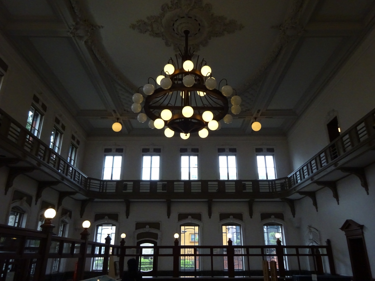 煉瓦と白タイルの瀟洒な外観はさることながら、内部の営業室の大空間や、頭取室・応接室や階段などの豪華な造りなど古き良き時代の銀行の雰囲気を存分に感じることができます。奥の管理棟には「勝平得之記念館」が併設され、当地出身の木版画家の作品も鑑賞可能。