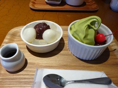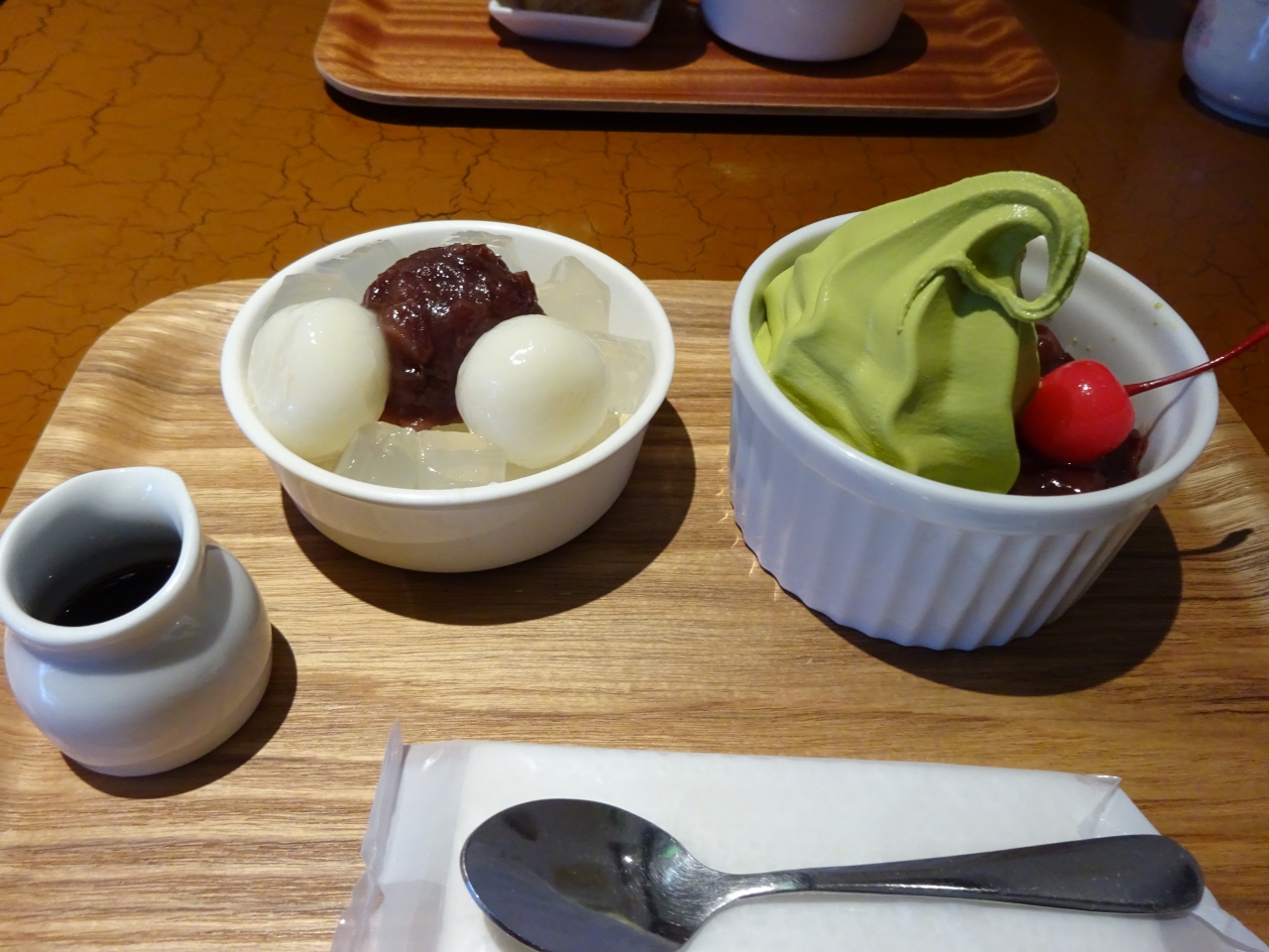 抹茶のパフェやババロアなど和風のメニューが中心。あんみつやぜんざいなどのセットでも500円ちょっとと手軽に立ち寄ることができます。