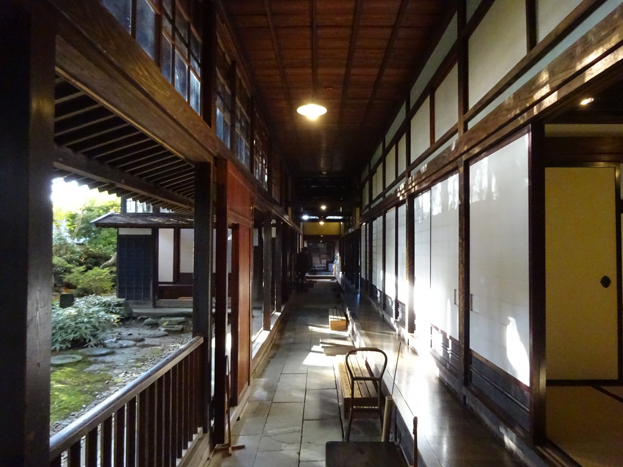 「通り」と言われる長い廊下の長押や竿縁天井には一本物の杉が使用されていること、「杉皮葺きの石置屋根」は4万個の石が使われ現存する形式はここ含め2軒だけとなっていること、酒田地震を教訓に大広間の屋根を支える梁をトラス状にしたことなど、広大なお屋敷には多くの見どころがあります。