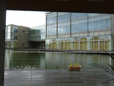 人気のお店のようで店内は満席、少し待って案内されました。お濠をイメージして作られた場所にあり、店内から外を見ると水に囲まれたようで落ち着いた雰囲気です。