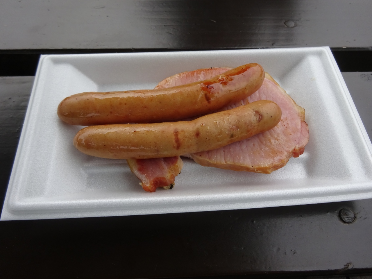 人気の「ライブの山賊焼き」はソーセージとベーコンのセットで500円。結構食べ応えがあります。平日限定のミニサイズであれば、ちょっとしたおやつにしたり、他の店との食べ歩きも可能です。- 旅行時期