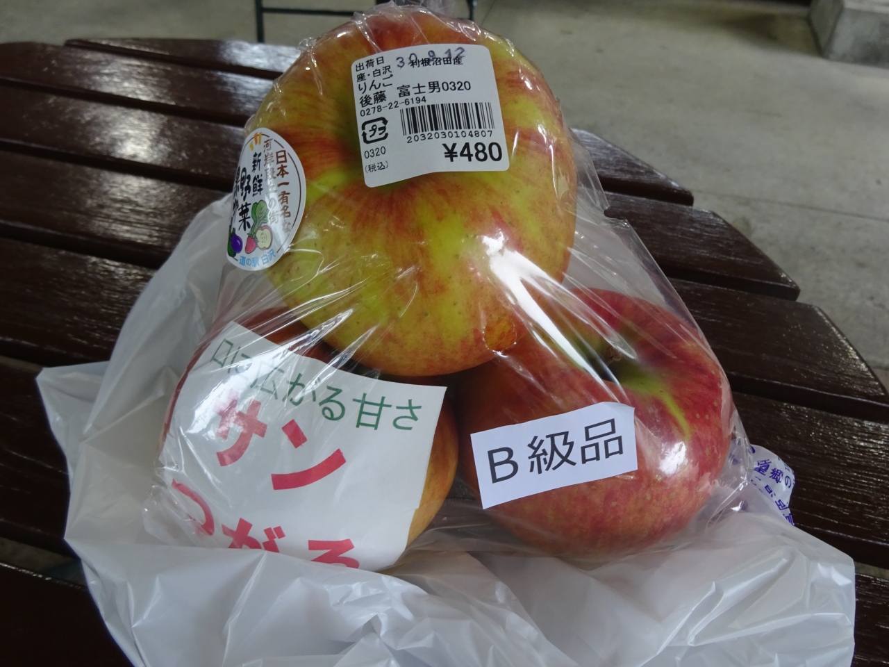 ただし農産物直売所は結構広く、地元産の大粒のりんごが傷物ゆえに安く販売されていました。