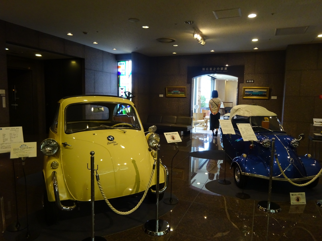 そして入口のエントランスには可愛らしい2台の名車が。BMWイセッタ300エクスポートとメッサーシュミットkr201ロードスターはいずれも50年以上前に生産された乗用車で、その造形はまさに芸術品と言えるもの。