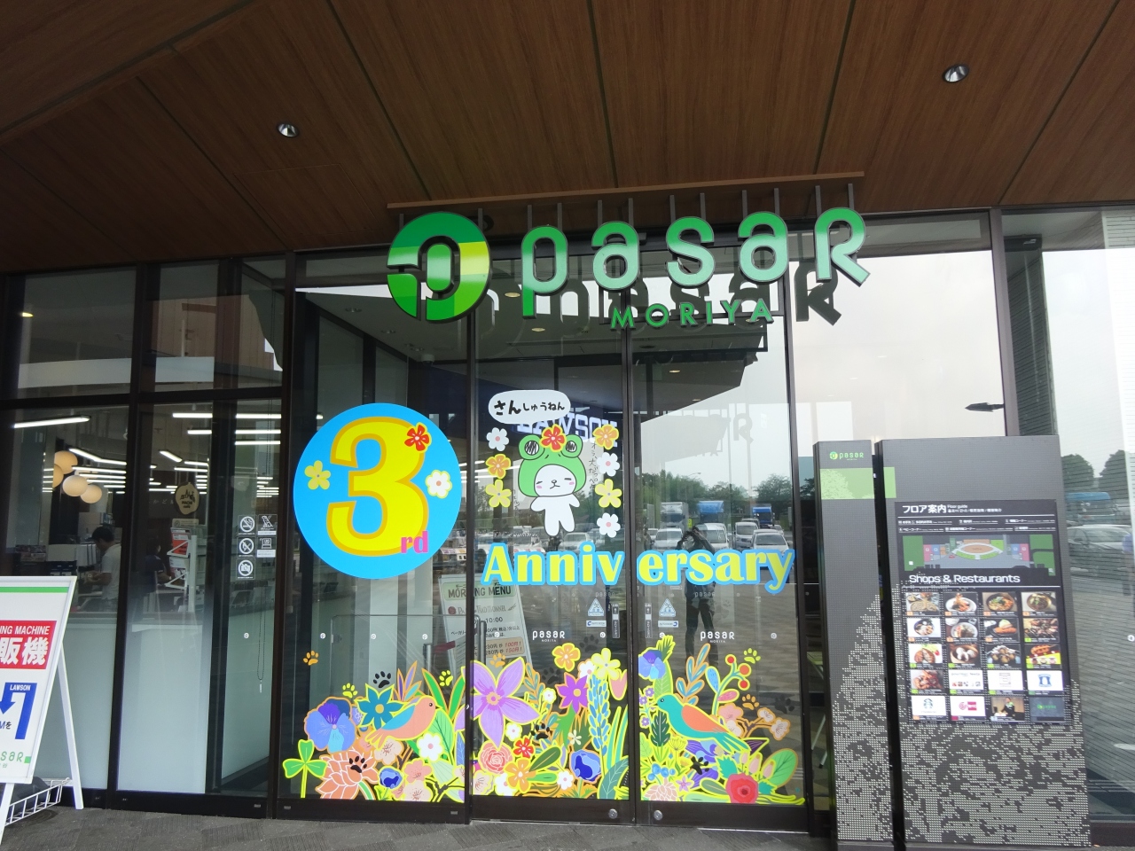 建物の入口に「3周年」の表示がある通り施設は新しく、また内外ともに木目が使用され落ち着いた雰囲気があります。