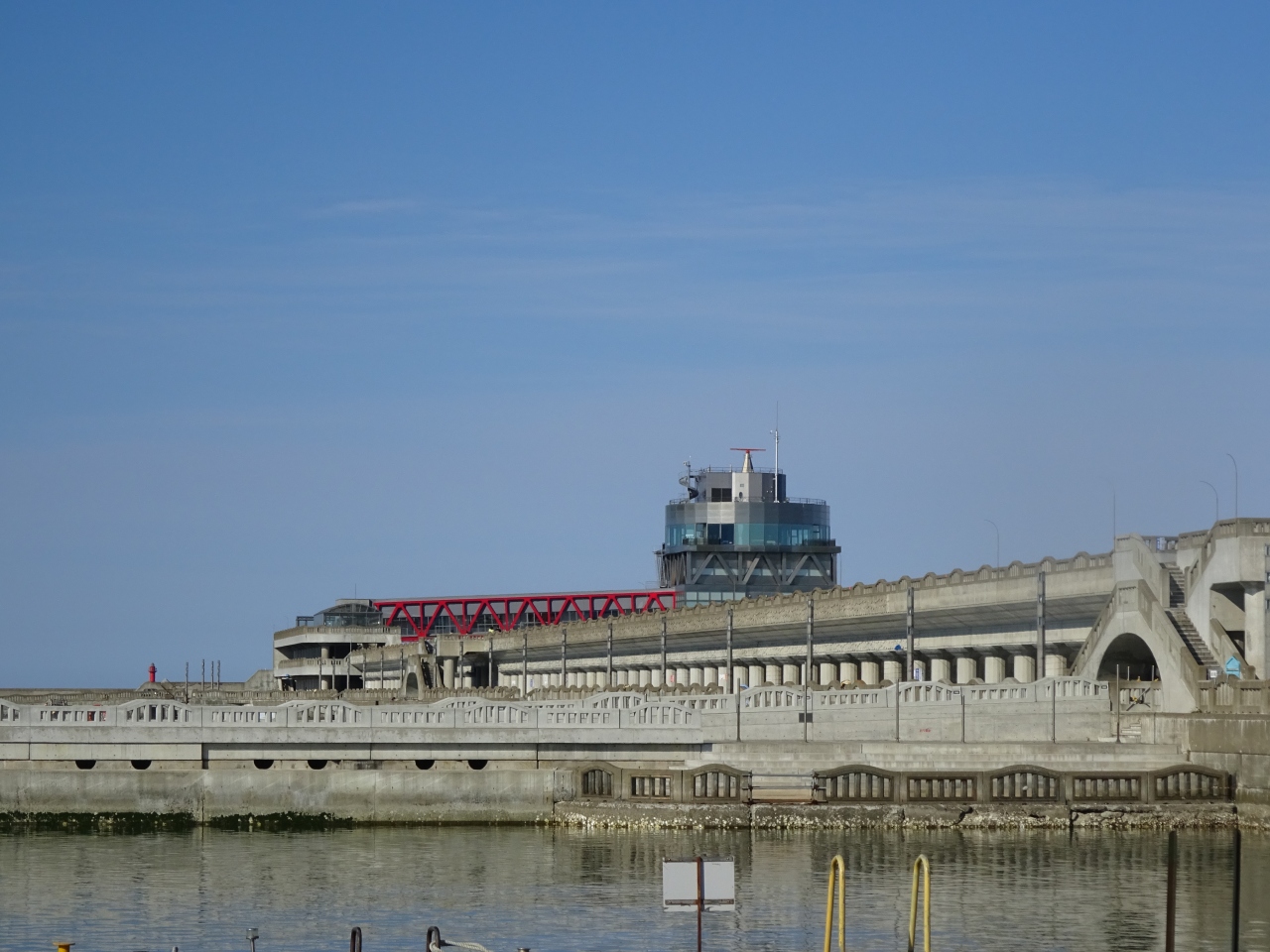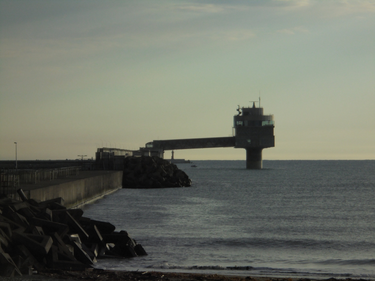 紋別港の堤防の先にある「氷海展望塔オホーツクタワー」。