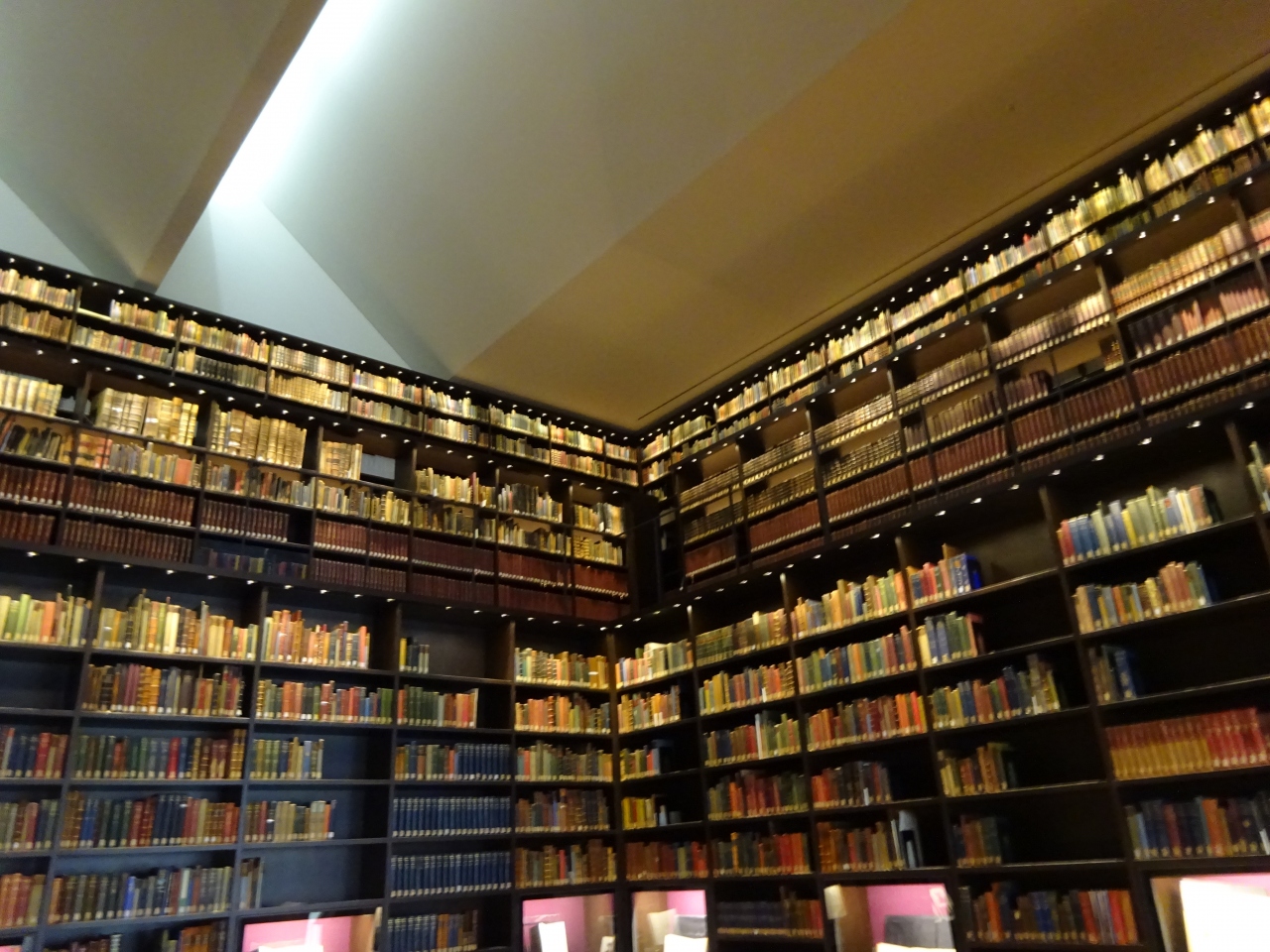 2階の展示室に上がると「モリソン書庫」があり、古書が天井までうず高く詰まれ圧倒されます。