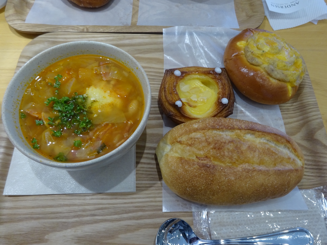 パンの種類がやや少ないと感じましたが、別に注文した日替わりのスープ含め味には満足です。