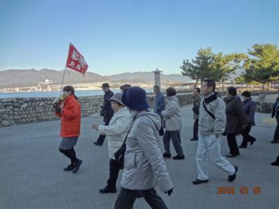 暗い海にライトアップされた厳島神社は幻想的だ。