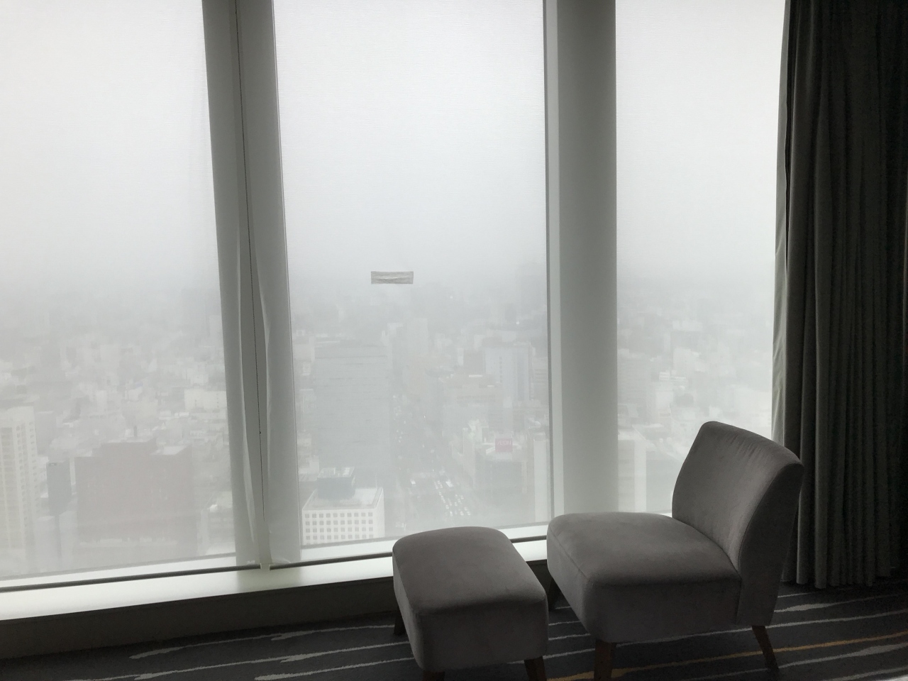 二人で座るチェアーがない。デスクチェアーひとつと、写真のように一人で足を伸ばして座るソファがひとつ。なんか、問題ばかり言ってしまったが、仙台では、やはり景色最高のいいホテルです。- 旅行時期