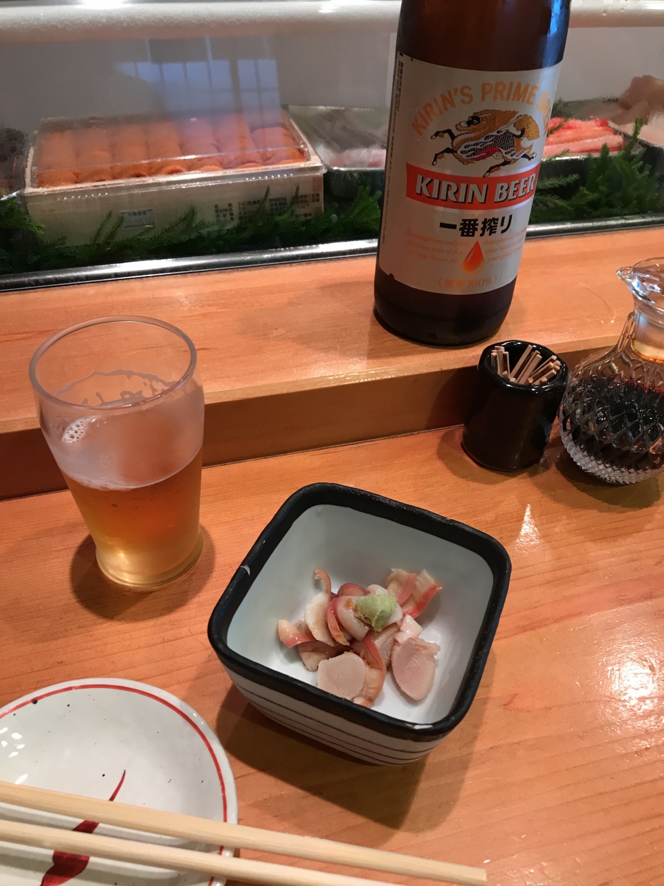 まずはビール。こたたらは瓶ビールのみ。日本酒も地酒あり、白ワインも美味しかった。とにかく、お寿司は芸術品でした。カウンターに座れば 親方とお話しも出来るし、握っている様子見ながら注文も出来るので、おススメ!- 旅行時期