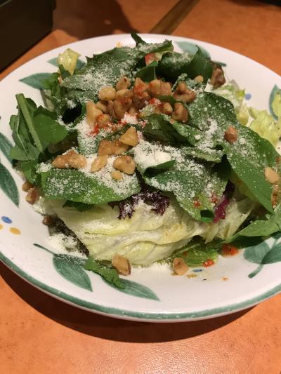 友人はドリンクバー。サラダ、グラタン、チキン、ガーリックバケット。挙句に100円グラスワインをしめに。トータル2000円弱。一人千円弱。えーえー!!ありえへん。