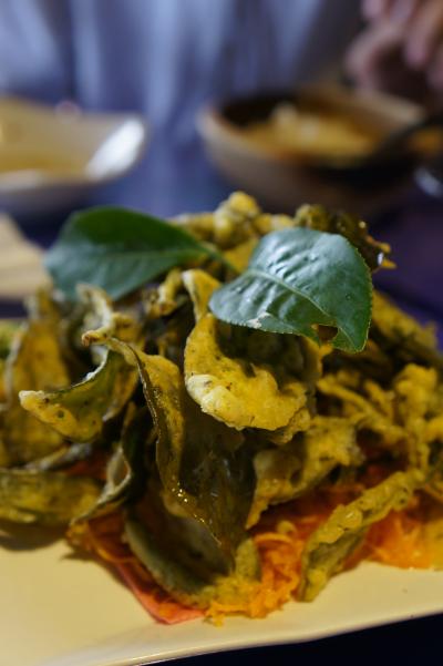 炸茶葉茶葉の天ぷら。すっごくおいしかったです。新芽のついたところを食べ...