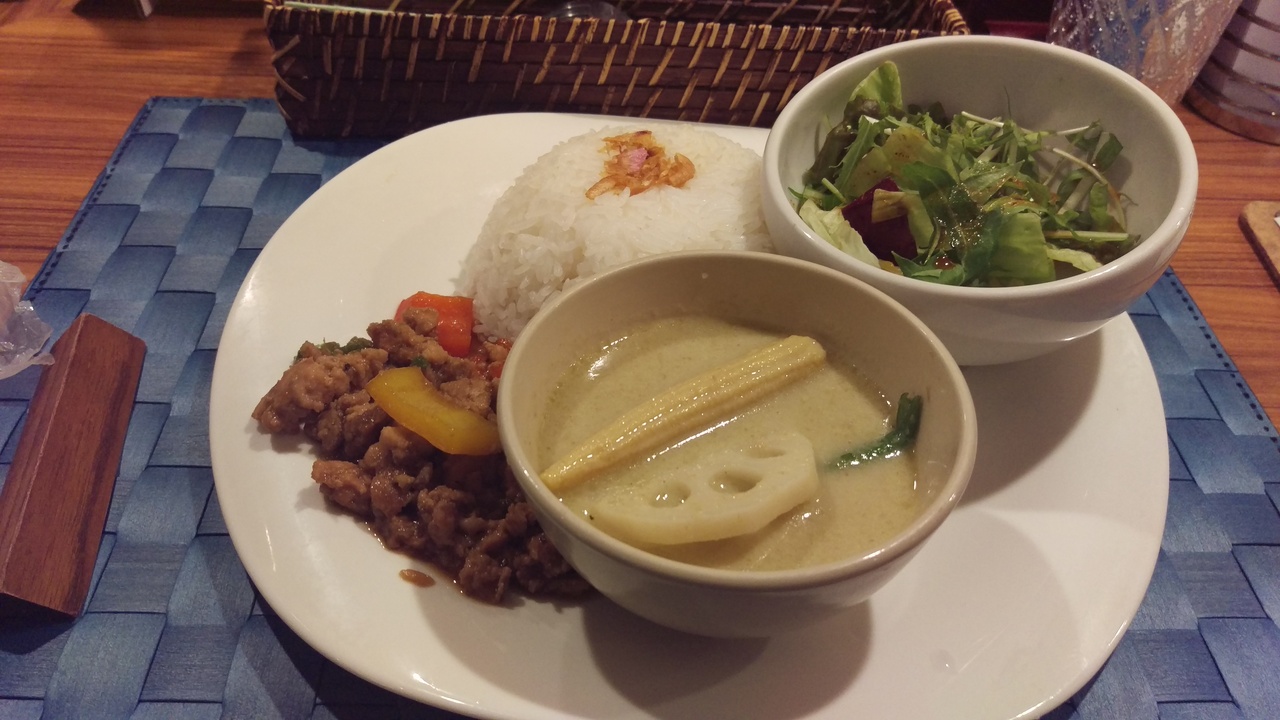 カレーはコクのある味で美味しかったです。ガパオもタイ米に挽き肉とその脂がよくあい美味しかったです。