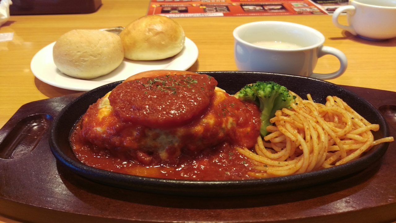 ステーキも食べてみたかったけど、ハンバーグも食べてみたかったので、ガーリックトマトハンバーグをオーダー。