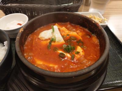 スンドゥブを初めて食べましたが、辛くて美味しいスープに柔らかくて辛味の染みた豆腐が美味しかったです。三種類のナムルも美味しいです。- 旅行時期