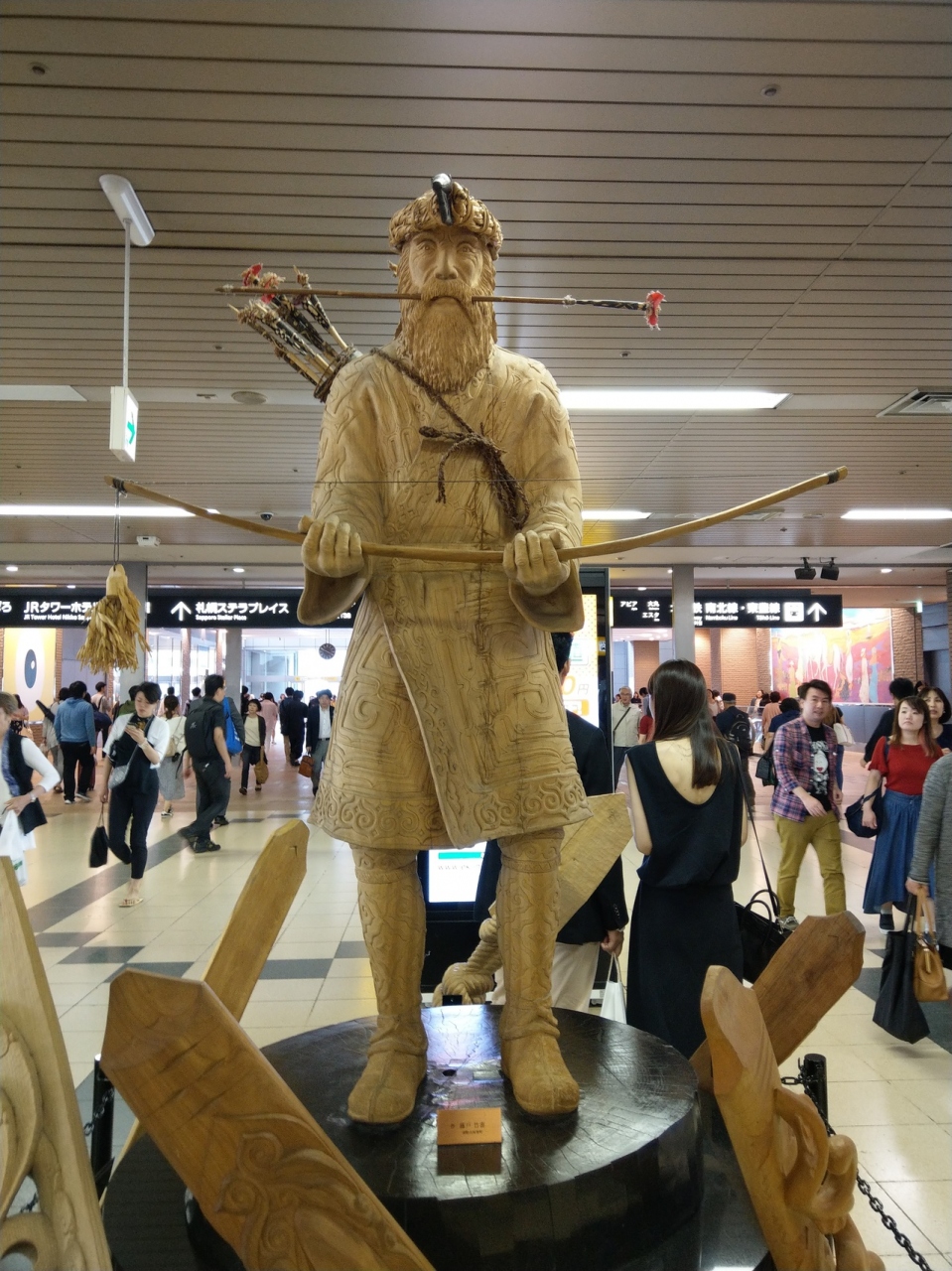 JR札幌駅の改札を出てすぐの場所にあるアイヌ人男性の像です。