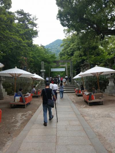 賑やかな表参道を通り抜け大門をくぐると商店はなくなります。そして、大門をくぐって少しすると大きな和傘の露天が見られます。それぞれの和傘の下には1名の女性。