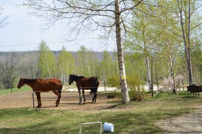 建物は雰囲気のいいログハウス、敷地内には馬がいます。