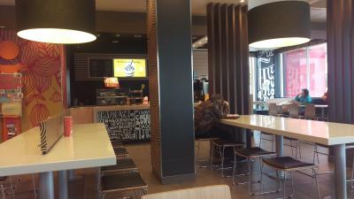 店内は広くて新しいです。 駐車場も広く、ドライブスルーもあります。