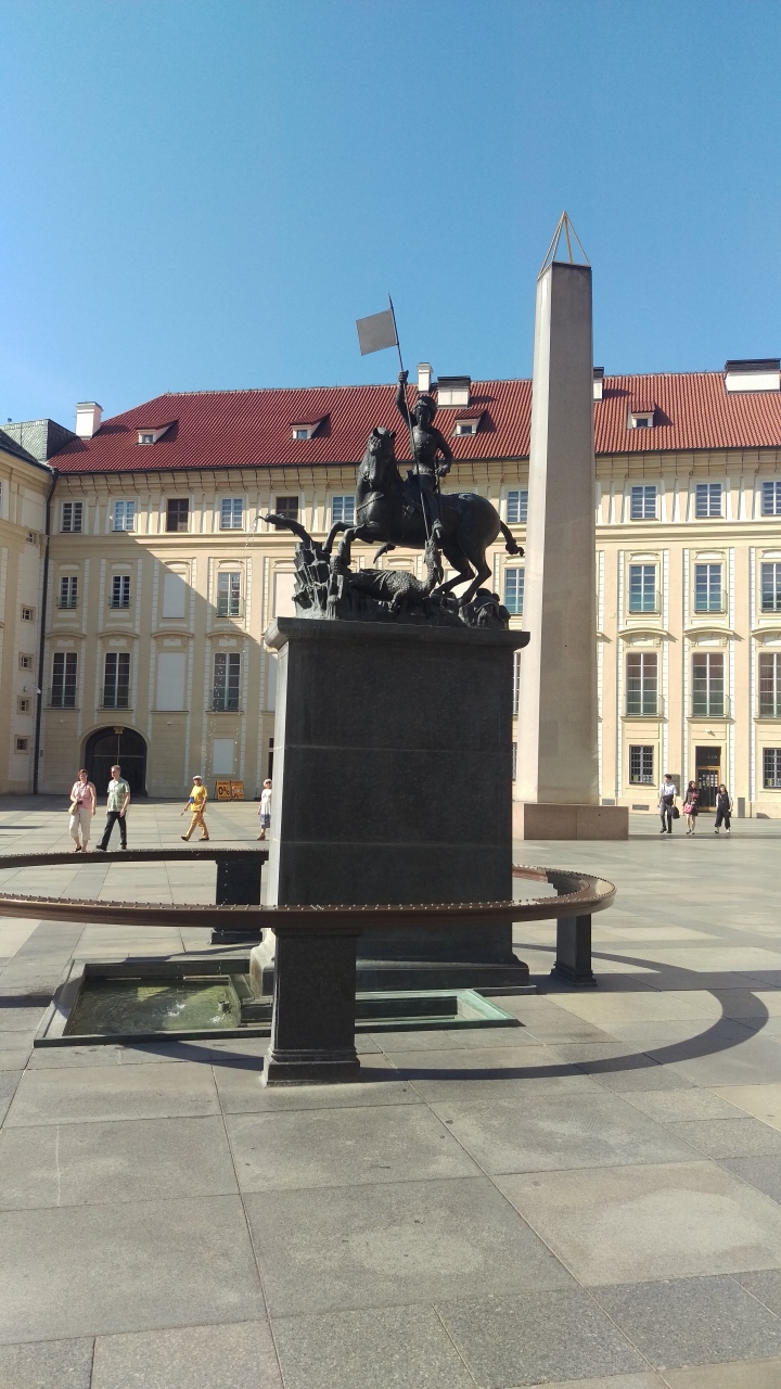 プラハ城内の聖ヴィート大聖堂の南塔前にある大きな広場にある銅像です。