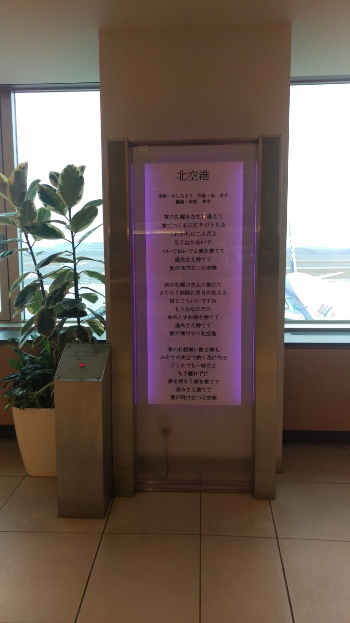 50代、60代の方がスナックでよく歌われているデュエット曲「北空港」の歌詞が書かれたモニュメントがありボタンを押すと「北空港」のメロディが流れます。