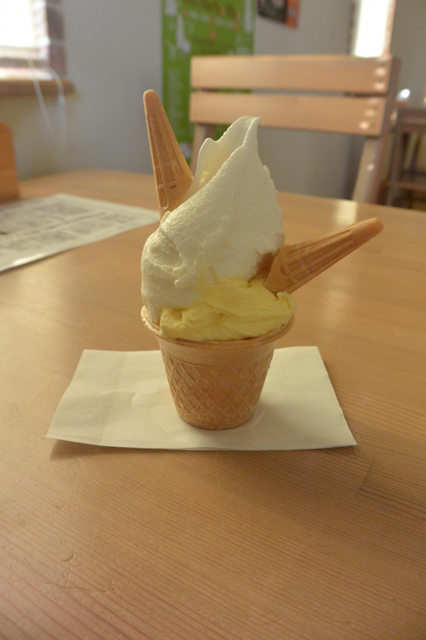 この日はダブルのアイスクリーム350円を頼み、味はカマンベールとバニラメキシコを選びましたが、どちらも濃厚で美味しく、特にカマンベールのほんのりチーズ味はチーズ好きにはたまらない美味しさでした。- 旅行時期