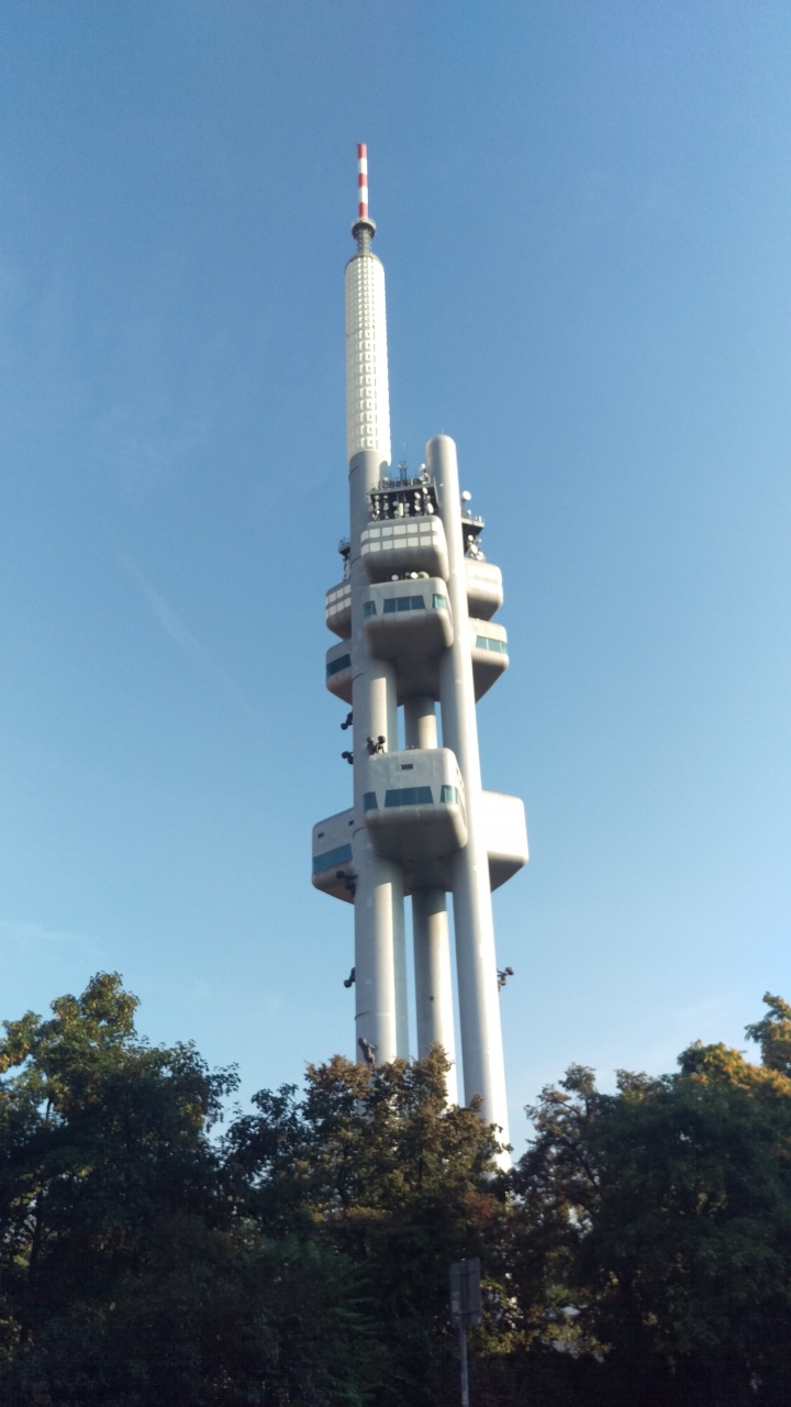 プラハの街は街中が中世にタイムスリップしたかのような昔ながらの景観を守っているのにも関わらず、少し街はずれとはいえ、このデザインのこのタワーを建てることに反対とかはなかったのかな?と思うくらい違和感があります。