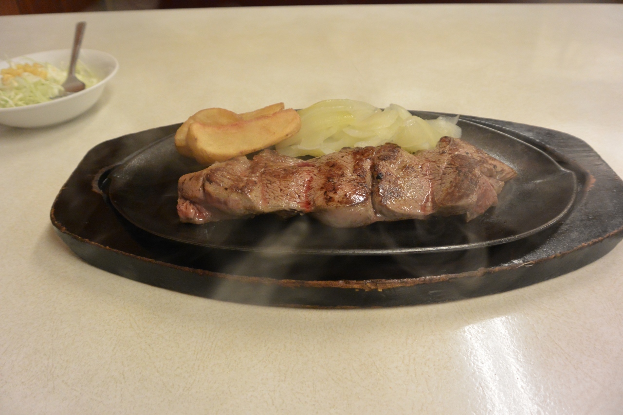 今回はテンダーロインステーキのMサイズを頼みました。セットでライスorパン、スープ、サラダがついていました。