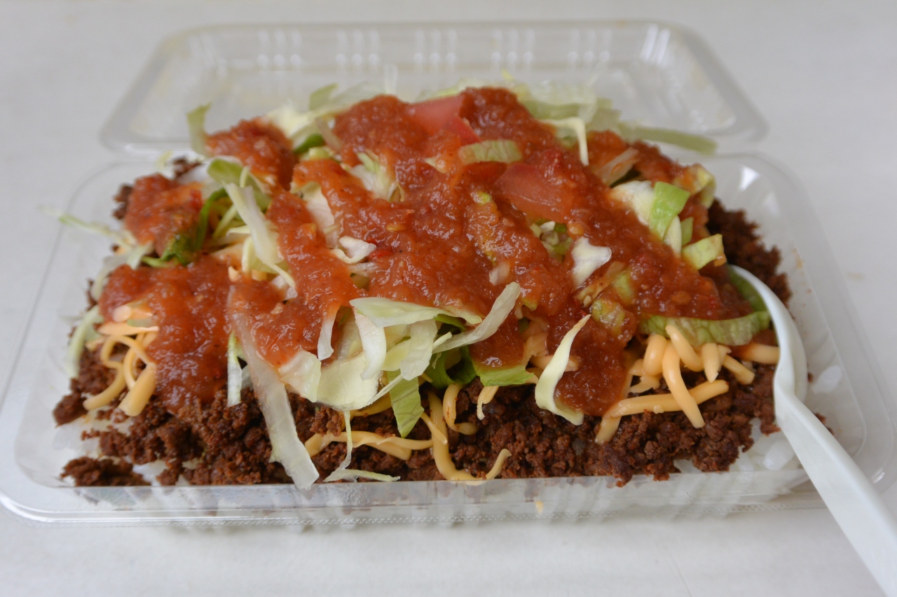 なのでワンコインでこの二つを頼んで観ましたが、タコスは皮がサクサクのパリパリで、野菜、お肉の味付けもとてもいい。タコライスは小だと小さいのかな?とおもっていましたが、丁度いい大きさ(プラスチックの折りに入っている)で、これもとても美味しかったです。野菜とお肉にチリソースが絡まってとても美味しいです。