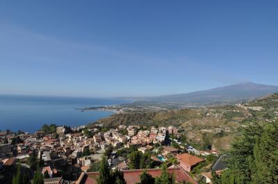 - タオルミーナの繁華街からは離れていて移動はシャトルバス、公共バス、タクシーを利用。高台にある分、景色は最高で、利便性とどちらかを優先するか。