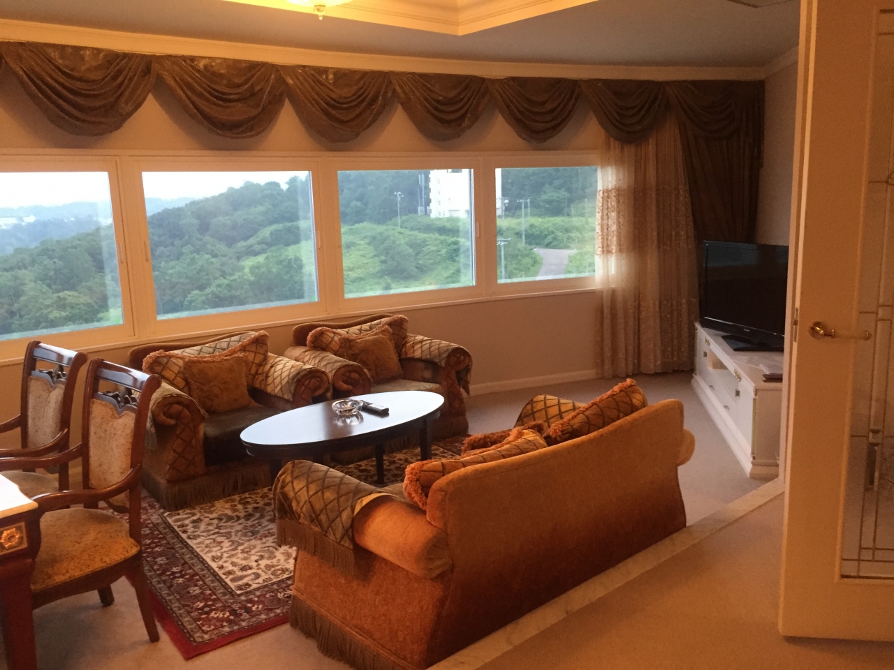 部屋の広さに対して、テレビが大きすぎる感じがしました。