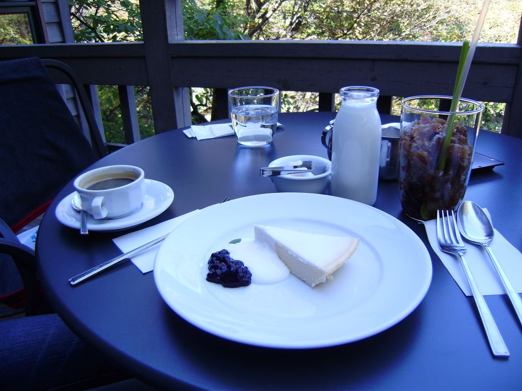 テラスから滝を見ながらコーヒーを飲んでまずいわけがありません。
