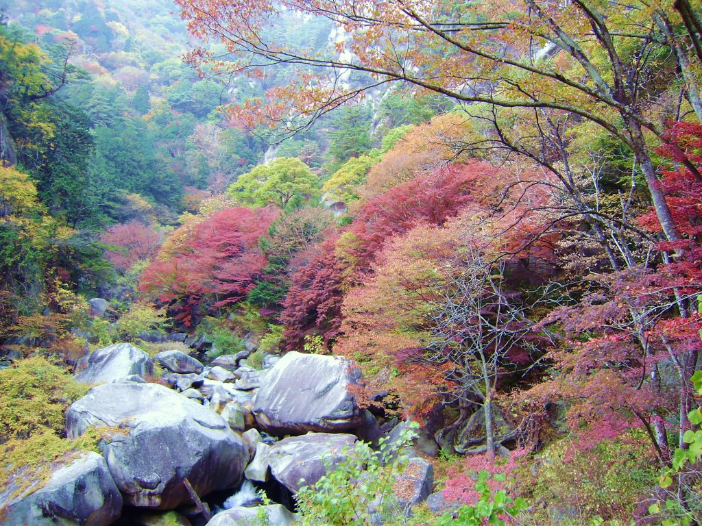 切り立った岩と川、それに紅葉が織りなす風景は素晴らしく、最盛期はまさに絶景というにふさわしいです。