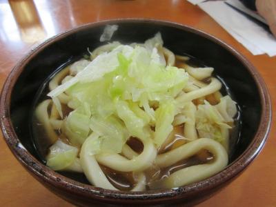 ふつうの吉田うどんと肉天うどんにキャベツを追加で頼みました。