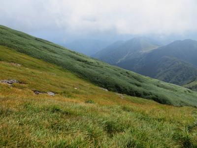 ただし、山頂からシラジクボ方面へ15分ほどのところには山々の稜線を見渡すことができる展望スポットがあり、そこが見せ場となっています。