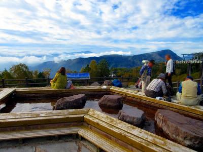登山を終えたら山頂駅に設置されている「天空の足湯」に浸かって、足の疲れを少しでもとって帰りましょう。