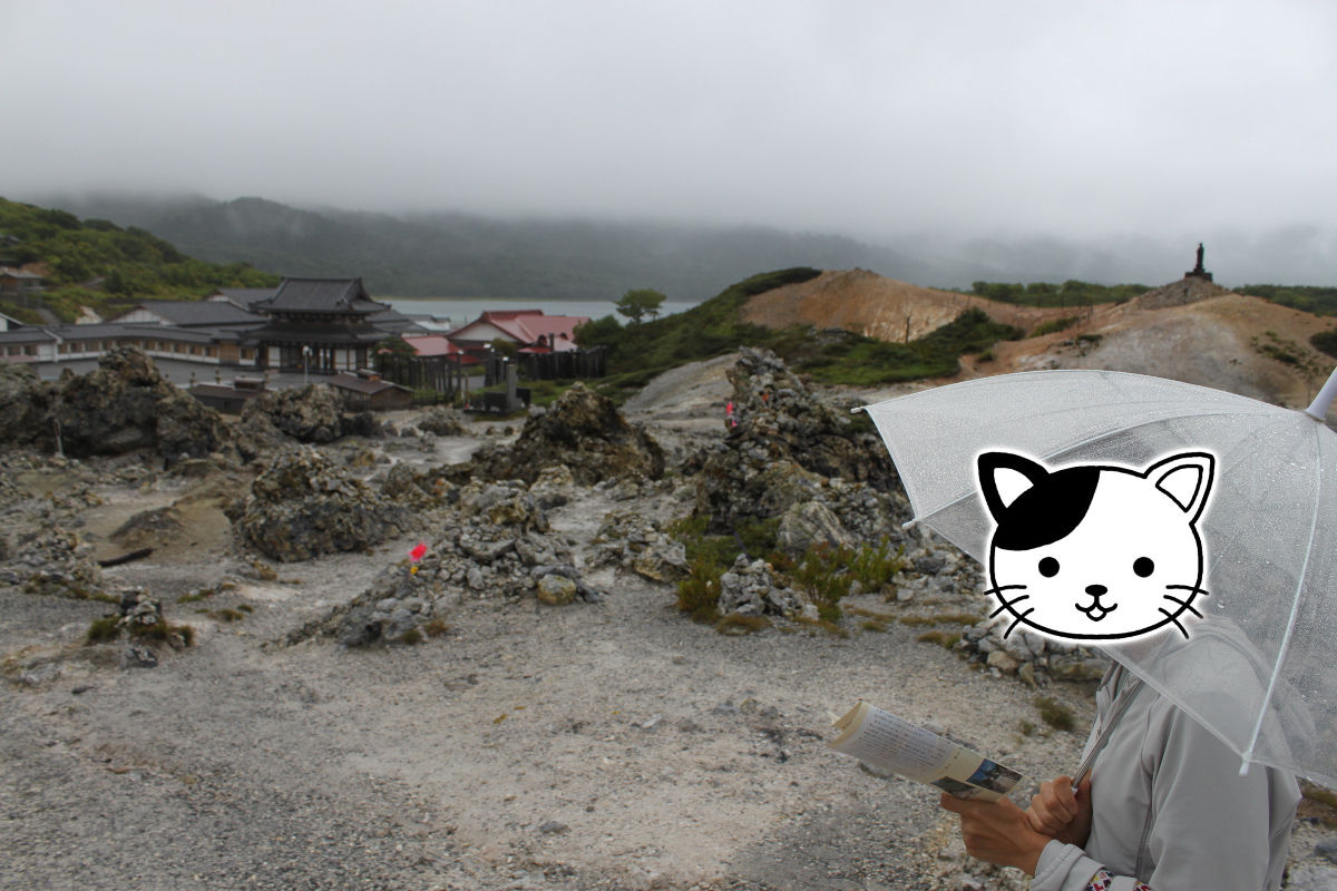 溶岩が固まった地面や、そこからときたま上がってくる温泉の湯気。