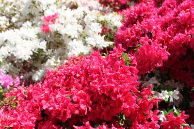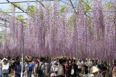 春になると新聞に載るきれいな藤を見ようと出かけました。花は確かに素晴らしい。しだれ藤以外にもつつじなどの色鮮やかな草花がたくさん展示されています。