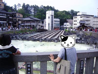 そして頂上では「え?こんなところに?」という感じで、忽然と湯釜が現れます。