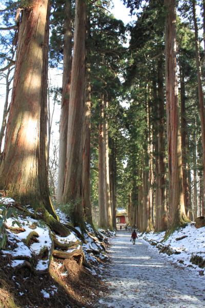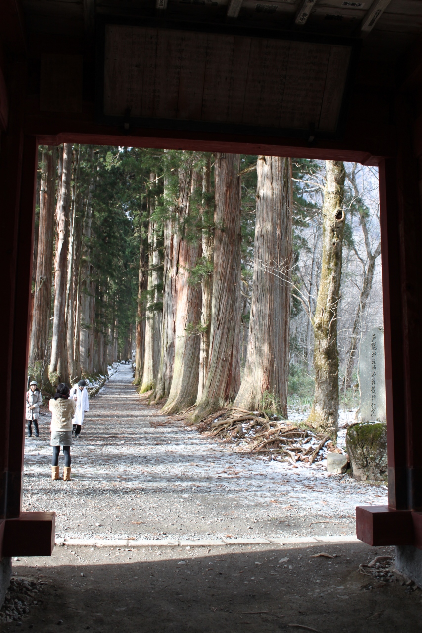 吉永小百合さんがCMで訪れていて、あの杉の並木道を歩きたいと思い訪れました。冬場で路面も凍結していたせいか車が少なく、それほどわかりやすい看板もないので最初は駐車場を通り過ぎてしまいました。駐車場はそれほど多くの台数は停まれません。なので観光シーズンは注意が必要です。
