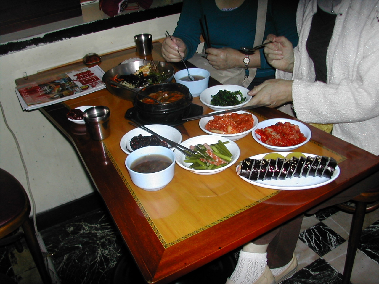 バスがみやげ物店に着くと集合時間をいって中に入れられる。いちおう入り、ころあいをみてすばやく外に出た。行く先は、バスを降りる前から窓越しに物色していた裏手に見つけた食堂。そこで持ち時間をいってすぐできるものをオーダー。事情を察してくださった店のひとは、本当にすばやく韓定食を運んできた。オンドルのきいた座席であたたかい食事。
