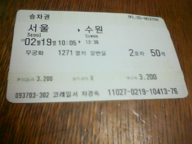 ソウル~水原30分のムグンファは、だんぜんお得。民族村、華城観光には、ぜひお奨めです。まもなく出かける友人にも利用するように言っておきました。