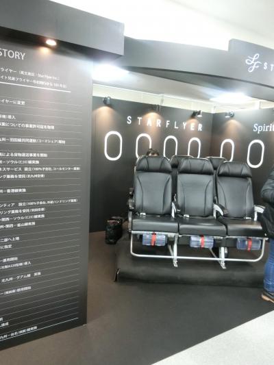 ○展示➡スターフライヤーの歴史や就航中の機体の座席もあり、実際に着席できます。