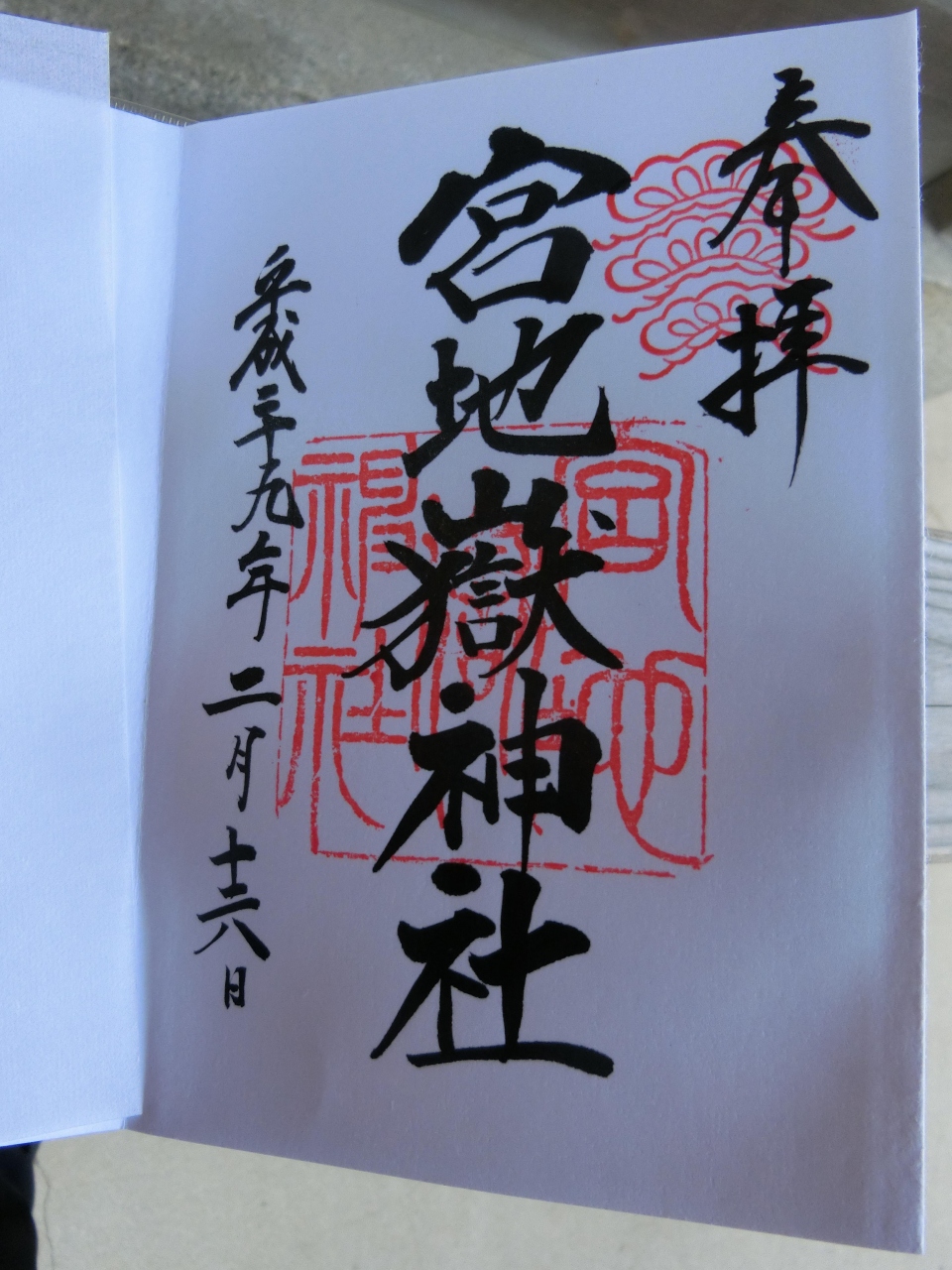 〇御朱印;「宮地獄神社」にも御朱印はありますが、「奥の宮八社」にも各種の御朱印があり、奥の宮八社には2か所の社務所で、それぞれの御朱印を戴くことができます。