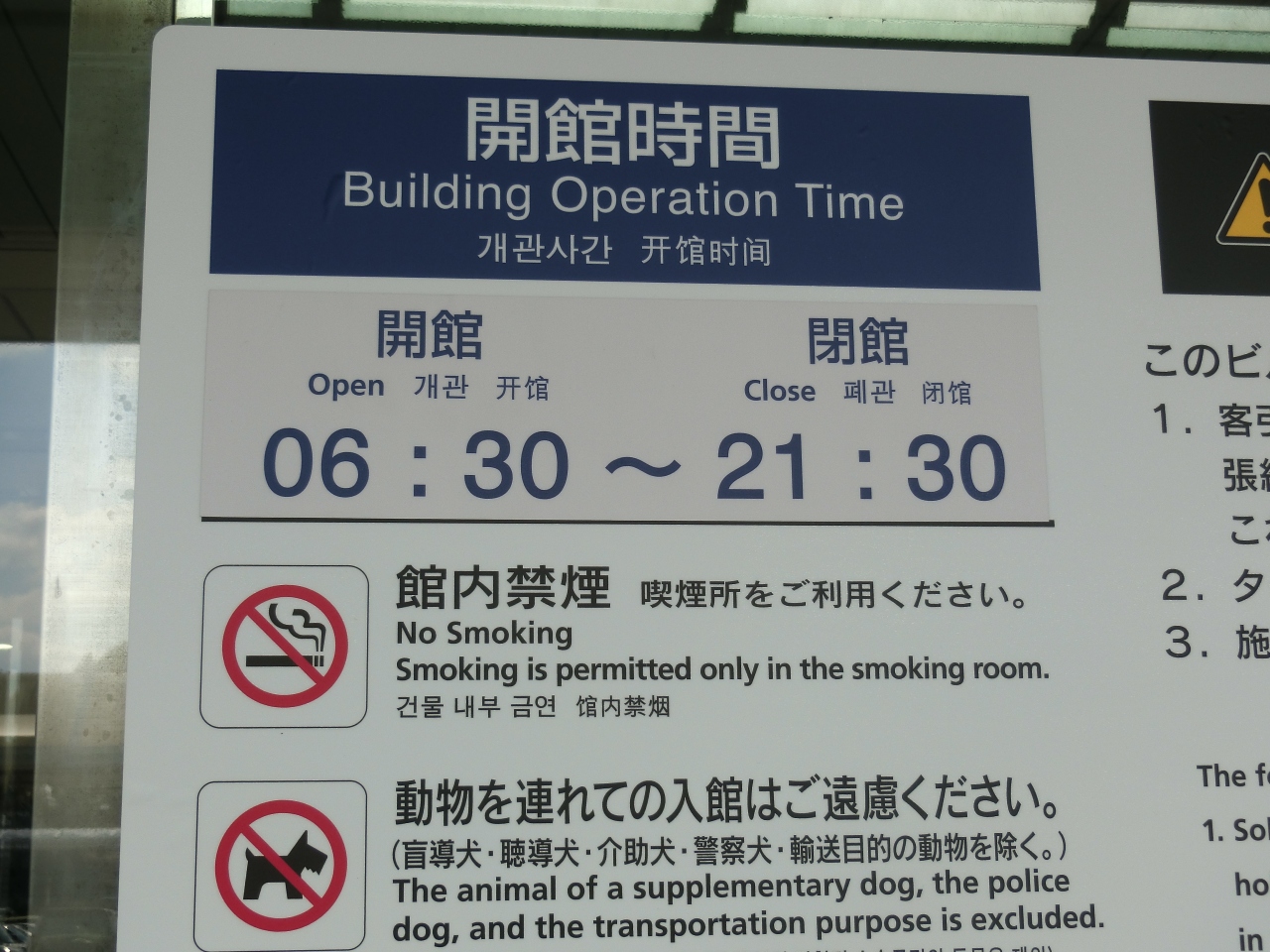 ☆展望デッキ;06:15~21:30 入場料金は無料です。