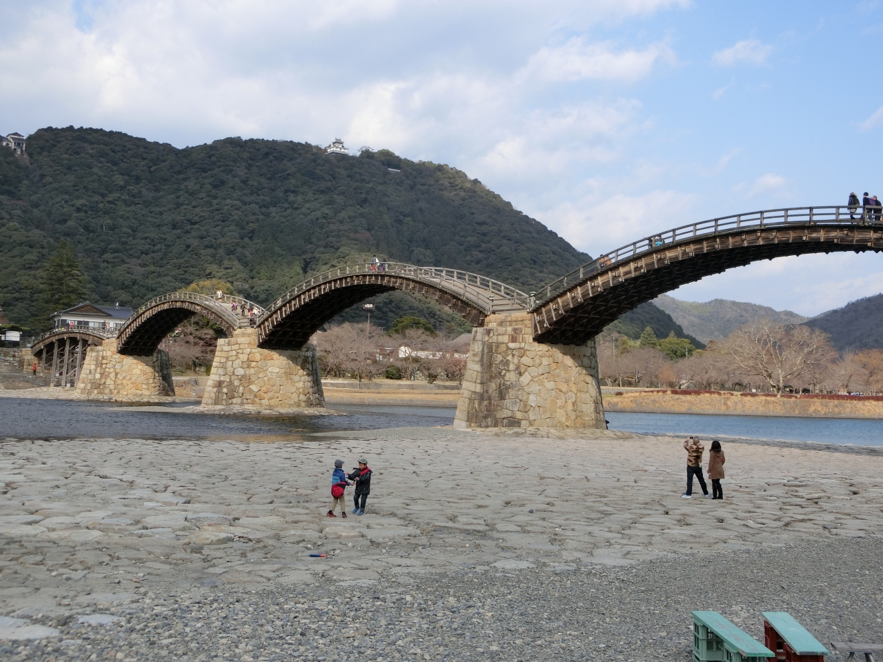 ご存じ? 岩国市内を流れる錦川にかかる木製の5連のアーチ橋です。