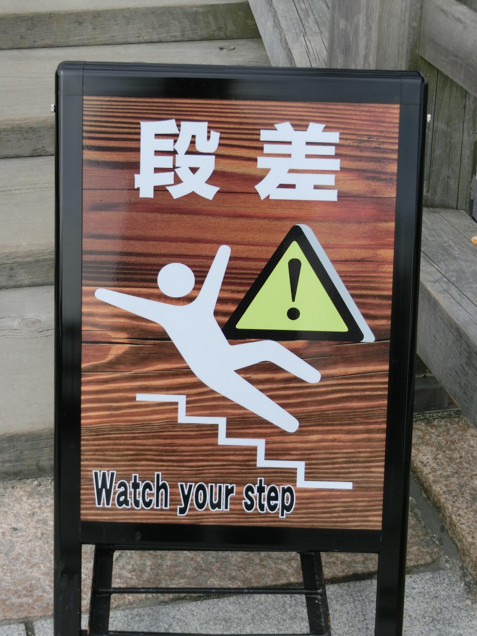 ・錦帯橋の段さは高さが低く、木製で出来ていることもあり、段自体が周囲の色に溶け込んで見えにくい場所もあります。